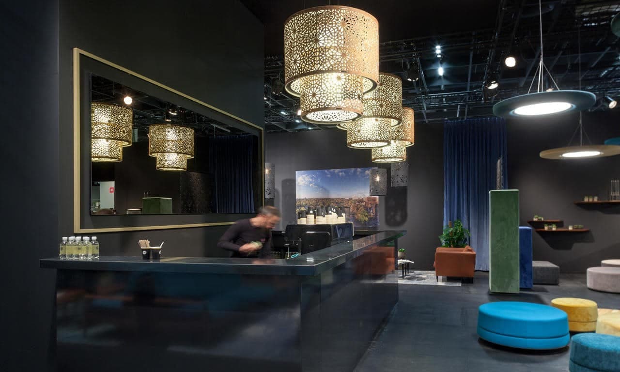 Der BuzziChandelier von BuzziSpace ist eine Akustiklampe in Form eines Kronleuchters. Der BuzziChandelier ist aus schallabsorbierendem Filz gefertigt. Die Akustikleuchte ist in zwei Ausführungen erhältlich. Beide Versionen haben feste Abmessungen und eine Auswahl von zwölf verschiedenen Farben des BuzziFelt Stoffes.