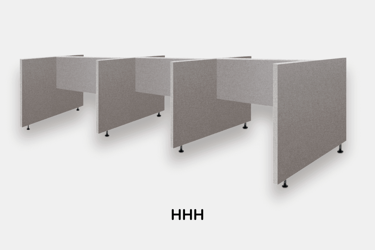 EASYfabric Workspace HHH-Form ist eine Anordnung von gepolsterten Akustik Trennwänden. Mit den Trennwänden können verschiedene Arbeitsplätze voneinander getrennt werden. Dies ist eine häufig gewählte Lösung in Großraumbüros. Sie sorgt für mehr Privatsphäre und Konzentration.